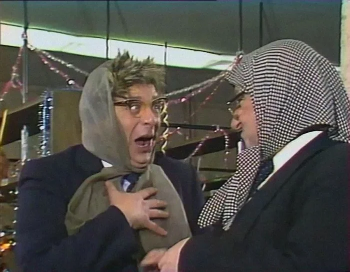 10. Виктор Ильченко и Роман Карцев на съемках новогоднего Голубого огонька в Останкино. 1979 год.