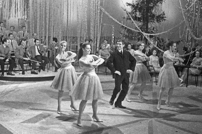 17. Эдуард Хиль и танцевальный ансамбль Алые паруса во время выступления на ЦТ в программе Голубой огонек. 1970 год
