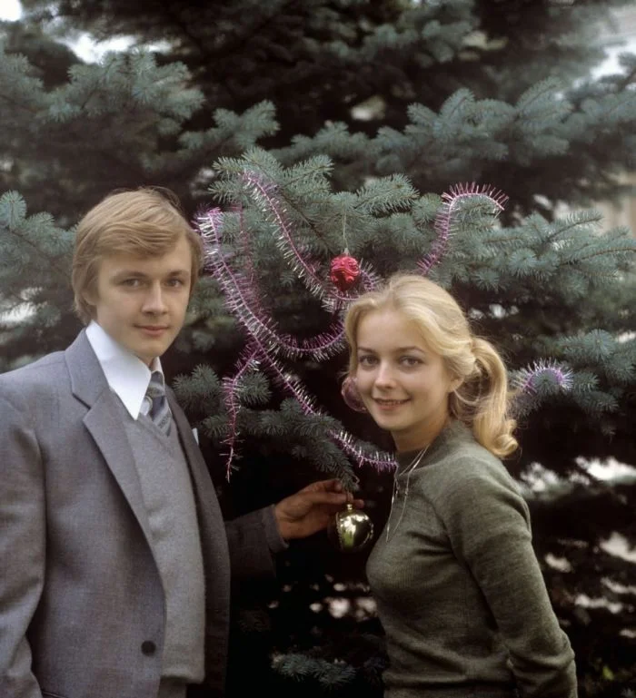 Владимир Шевельков и Наталья Вавилова перед съёмками в драме "Поезд вне расписания", 1984 год.