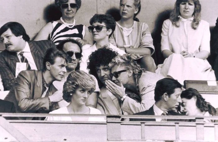 15. Принцесса Диана и принц Чарльз, а над ними Дэвид Боуи, Брайан Мэй и Роджер Тейлор