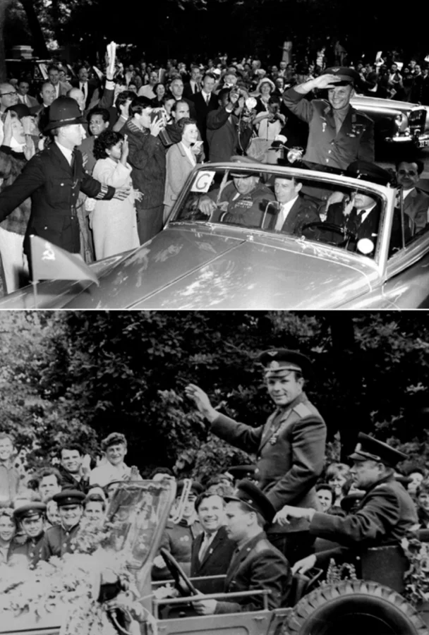 Митинг перерос в стихийную трехчасовую демонстрацию, которую Юрий Гагарин и руководители советского государства приветствовали с трибуны мавзолея Ленина. После окончания демонстрации Никита Хрущев провел Гагарина внутрь мавзолея, к саркофагу. Торжества продолжились на приеме в Кремле, на котором присутствовали многие конструкторы, имена которых тогда еще официально не назывались. Леонид Брежнев вручил Гагарину «Золотую Звезду» Героя Советского Союза и орден Ленина. Многие новорожденные мальчики в тот день получили имя Гагарина - Юрий. В рамках зарубежных визитов Юрий Гагарин посетил около 30 стран.