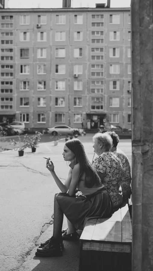 — Петровна, ты глянь-ка на Каринку-то нашу — вырядилась, как проститутка! Ишь, прошмандовка какая: ни стыда, ни совести!