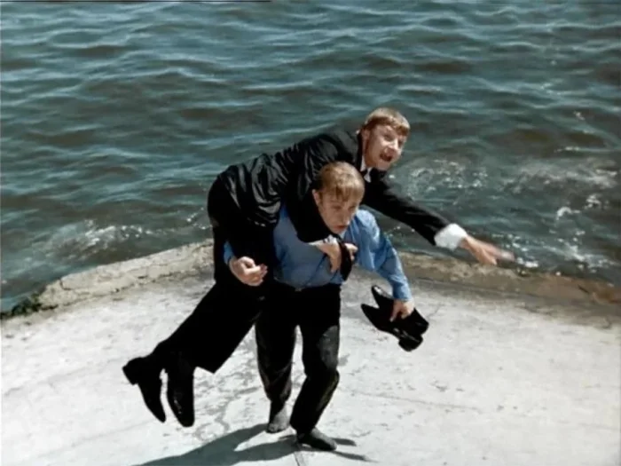 6. Савелий Крамаров и Владимир Басов на съемках комедии «Живите в радости», режиссёр Леонид Миллионщиков, 1978 год.