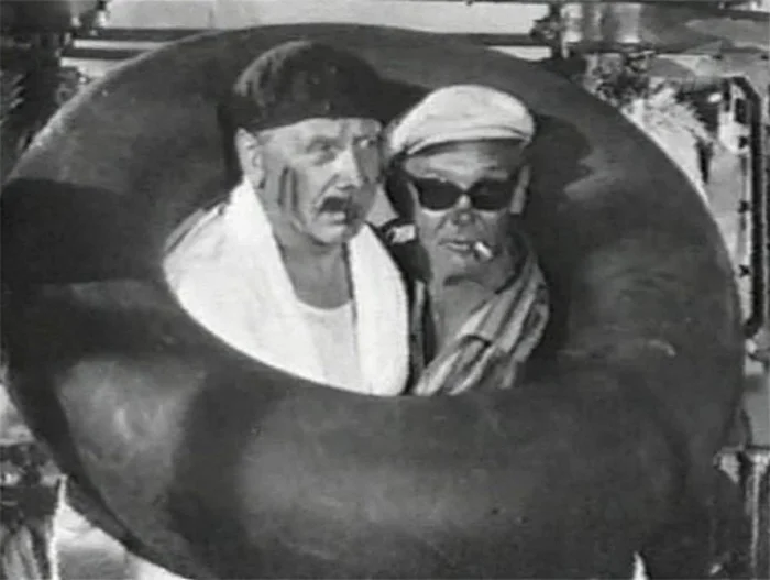 16. Леонид Гайдай и Анатолий Папанов на съёмках фильма «Бриллиантовая рука»