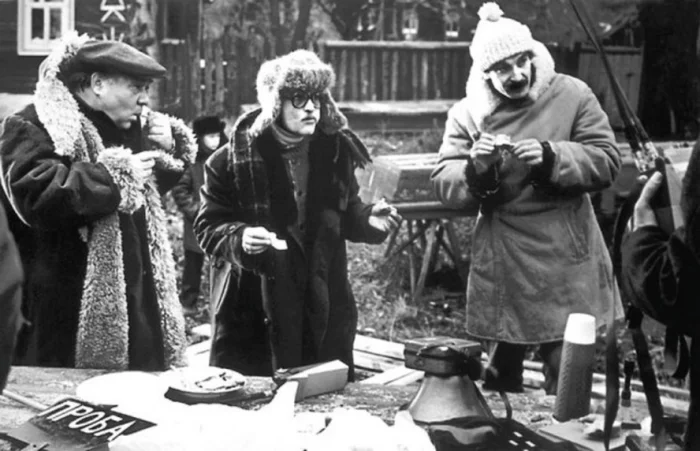 10. Евгений Леонов, Георгий Данелия, Юрий Клименко на съёмках фильма «Слёзы капали» в Ростове-Ярославском, 1981 год.