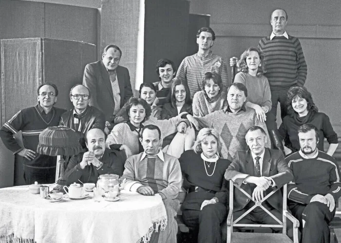 Из воспоминаний Анатолия Мироновича Смелянского: «Это постановочная фотография В. Плотникова. То есть не случайная. Многие мои друзья улыбаются и пока еще не представляют ни будущей судьбы спектакля «Перламутровая Зинаида», ни того, что случится с МХАТ СССР им. Горького. Снимок сделан в самый разгар «раздела» МХАТа, перед «исходом».