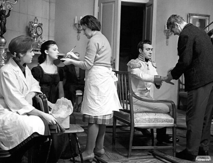 7. Людмила Савельева и Вячеслав Тихонов на съемках фильма «Война и мир».