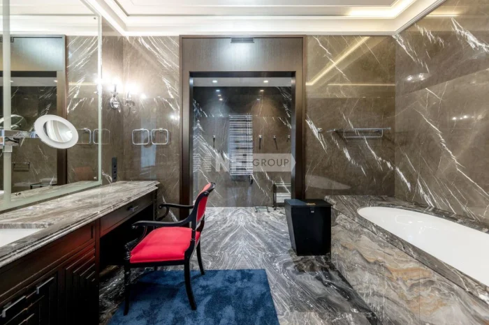 «Архитектура дома выполнена в стиле современной американской классики, где каждая деталь подчеркивает элегантность и функциональность. Использование натуральных материалов, таких как камень и дерево, в сочетании с панорамным остеклением, позволяет дому органично вписываться в окружающий ландшафт. Просторные комнаты с отделкой и мебелью создают ощущение лёгкости и свободы, а наличие бани добавляет особый шарм и комфорт», — говорится в объявлении.