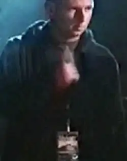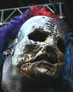 Шон Крэган. Это маска клоуна , он нашел ее еще около 20 лет назад и так описывает ее значение "Я поубиваю всех уб*дков!" Шон замотал голову медицинским бинтом, обильно политым кровью и, добавил к этому свой фирменный клоунский нос...