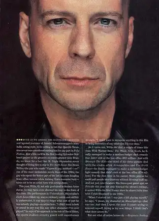 По мнению же критиков, одними из лучших ролей актера, стали второстепенные роли Уиллиса в менее коммерческих проектах. Уважение приобретенное им после роли Бутча в Тарантиновском "Криминальном Чтиве" /Pulp Fiction, 1994/ подкрепилось его участием в картине Пола Ньюмана "Дураков Нет" /Nobody's Fool, 1994/.