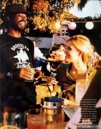 На Гавайях у Мэгги появилось новое увлечение - серфинг. Она с восторгом вспоминает, как впервые встала на доску. 'Я училась сама, без инструктора и почти сразу же поймала свою большую волну', - рассказывает Мэгги. - 'Это была счастливая случайность - волна не выглядела такой уж большой, когда я начинала грести, но зато потом:'. Историческая встреча с волной оставила 'огромные жуткие синяки' на ногах у Мэгги, там, где её стукнуло её же собственной доской. 'Выглядело это ужасно', - говорит Грейс. - 'Не самая лучшая вещь для съемок в бикини'. Впрочем, как раз это меньше всего обеспокоило продюсеров сериала - все актеры наставляют себе синяки и шишки, бегая по джунглям на съемках. Мэгги вспоминает, что в конце каждого съемочного дня она насчитывала по полдюжины новых ссадин у себя на ногах.