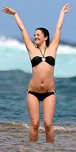 Темные купальники смелых фасонов, украшенные фурнитурой выбрали Дрю Берримор и Кейт Босуорт: просто, но со вкусом, глядишь, так и папарацци не заметят среди прочих отдыхающих… Придется помахать им руками!