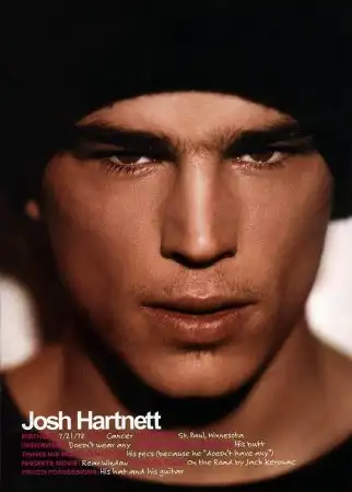 Возможно, это и определило его дальнейшие пристрастия, поскольку, в отличие от многих актеров-сверстников, Джош обладает хорошими познаниями в области литературы. Например, своей любимой книгой он считает роман «Идиот» Достоевского. Музыку тоже выбрал для себя не ту, что слушают его фанатки — Джош Хартнетт предпочитает джаз и блюз.