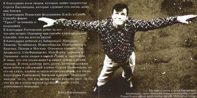 Сергей Наговицын - автор-исполнитель в жанре русский шансон. Широкую известность приобрел в 1998 году, после выхода альбома "Приговор". Всего Сергеем выпущено пять альбомов: "Городские встречи", "Дори-Дори", "Этап", "Приговор", "Разбитая судьба". Родился Сергей Наговицын 22 июля 1968 года в Закамске. Учился в средней школе №69. С 10-го класса Сергей начал играть на гитаре. После школы он поступил в Пермский Медицинский институт. Затем армия. По распределению Сергей Наговицын попадает в Батуми. Часть готовила солдат для войны в Афганистане. Несмотря на многочисленные рапорты о направлении его в зону боевых действий, командование оставило Сергей Наговицына в части. Здесь он играл в группе «Эксперимент». Демобилизовавшись из Вооруженных Сил, Сергей Наговицын устраивается на работу в Пермский "ГорГаз" где существовала самодеятельная рок-группа, в которой Сергей Наговицын и записал первый альбом "Полная Луна". Благодаря этой работе в 1992 году московский продюсерский центр "Русское Шоу" предложил Наговицыну подписать контракт о звукозаписи и перебраться в столицу. Наговицын согласился, но жить в Москву не переехал. К началу 1994 уже было написано 16 песен. Половина из них вошла в первый альбом "Городские встречи" (1998). Затем был записан альбом "Дори-Дори". Сюда вошли произведения, написанные в 1995-96 годах. Именно с "Дори-Дори" началась всероссийская известность музыканта. Своими любимыми исполнителями Сергей Наговицын называл: Аркадия Северного, Владимира Высоцкого, Александра Розенбаума, Александра Новикова. Сергей Наговицын не сидел в тюрьме и не привлекался к уголовной ответственности. В ночь с 19 на 20 декабря 1999 года, направляясь на гастроли в Курган, Сергей Наговицын скоропостижно скончался от кровоизлияния в мозг. 22 декабря Сергей был похоронен в Перми на Закамском кладбище.