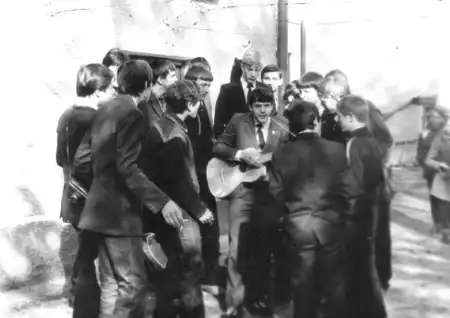 Насчет гитары…. Играть он (как и все мы) начал в 10 классе (84-85 год). Первую свою песню он спел нам где то в 1988 или 89 году. Все мы запали играть на гитаре в 85 году, когда у нас разошелся домашний концерт Розенбаума - его песни точно стали близкими для всех пацанов тогда. Среди наших "отцов" можно еще назвать Александра Новикова.
