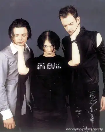 Брайан Молко (вокал, гитара, бас). Родился 10-го декабря 1972 года в Брюсселе, однако в детстве много путешествовал: то Америка, то Либерия, то еще что-нибудь, – пока не оказался в Люксембурге. Гражданство у Брайана двойное, англо-американское, папа – франко-итальянец, а мама – шотландка. Как было написано неким восхищенным Молко автором, “для того, чтобы понять, что он хочет сказать своими песнями, надо иметь такой же набор генов, родиться в одном месте, учиться в другом, жить в третьем, а гражданство иметь четвертое”. Отец мальчика имел дело с крупными денежными суммами, работая финансистом международного банка, и со временем страсть к стяжательству и накоплению, видимо, дала о себе знать. Родители Брайана развелись, когда тот был еще ребенком. По его словам, это сильно на него повлияло – в том числе и в плане сексуальности (?). Так или иначе, но Молко с детства тянуло к переодеванию в дамские наряды, да и чувствовал он себя не то чтобы совсем мужчиной. Брайан решил, что он – гей, и стал дожидаться того светлого момента, когда влюбится в какого-ниудь подходящего мальчика. С мальчиками не складывалось, потому что наш герой упорно влюблялся в девочек, при этом сам чувствуя себя… почти такой же девочкой. Так и остался “лесбиянкой в мужском теле”, как склонны характеризовать его многие наблюдатели. С детства Молко выглядел до неприличия женоподобно, носил платья, использовал большое количество косметики и не расставался с длинными волосами. Любил театр и в 11 лет впервые сыграл небольшую роль в шекспировской постановке некоей самодеятельной труппы. “Какая у тебя симпатичная дочь растет!” – говаривали маме Брайана соседки.