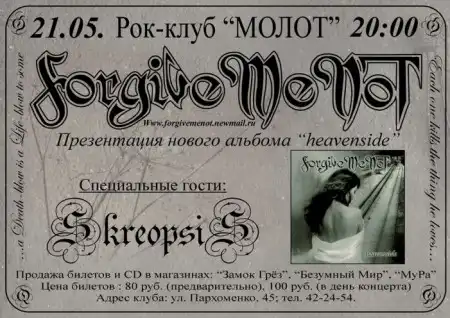 Летом 1998 года FORGIVE-ME-NOT подписывают контракт с российским лейблом METAL AGEN Records, который переиздает «Tearfall» в формате CD/MC.