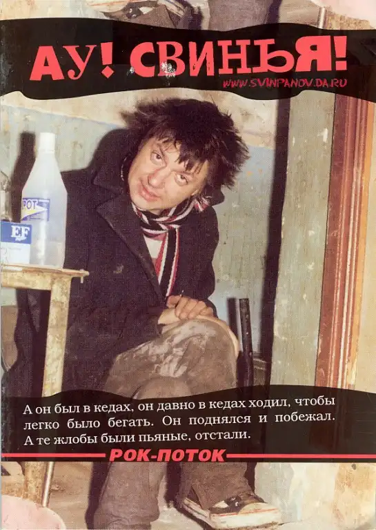 Свин не был анархистом, хотя некоторые его песни были резкими, антиполитичными, направленными против власть имущих ("Рейган провокатор", "К нам приехал в Ленинград чей-то сраный депутат..."), он так же не считал себя панком, хотя про него ходят столько баек (про то, как он бросался говном со сцены, пил из унитаза и пр.), он не любил "рокешник". Его творческая мечта была стать эстрадным певцом, благодаря чему он организовал в середине 90-ых проект "Аркестр АУ", где пытался играть свои песни более оригинально с использованием духовой секции. Еще Свин любил выпить. И делал это лучше всего, посветив этому большую часть своих песен ("Самогоноварение", "Соловей", "День рождения" и др.). Ну не был Свин стрейт эйджером. Зато песни писал искренние и всю свою сознательную жизнь жил так, как хотел, чего многие из нас, увы, не могут себе позволить.