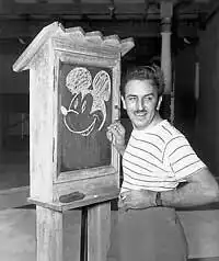 В 1927 году Уолт Дисней придумал нового персонажа для мультфильмов - веселого мышонка Мортимера, будущего Микки Мауса. Первый фильм про Микки Мауса назывался "Стремительный самолет", и вышел на экраны уже в 1928 году. Так родился Микки Маус, которого озвучивал сам Дисней. Первый цветной фильм с Микки Маусом назывался "Концерт".