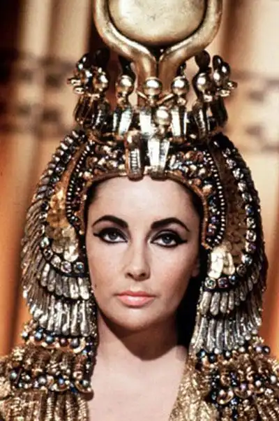Актриса Элизабет Тэйлор стала обольстительницей сразу двух величайших полководцев античности, сыграв роль египетской царицы в фильме 1963 года "Клеопатра". По преданию, любовниками царицы были римский император Гай Юлий Цезарь и его приближенный Марк Антоний. Жирно подведенные глаза Тэйлор, с своеобразными "крылышками" в углах, прочно входят в образ царицы. В заключительной сцене Клеопатра кончает с собой, умирая от укуса аспида.