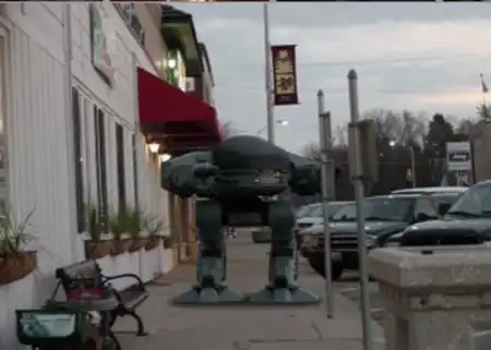 Суровая машина из фильма «Робот-полицейский» не даст в обиду детей и пенсионеров. Дизайн ED 209 был разработан с пожеланием режиссера Пола Верховена - мол, робот должен выглядеть, как американский автомобиль. Очевидно, по этой причине у робота и нет глаз...