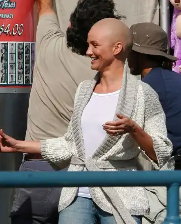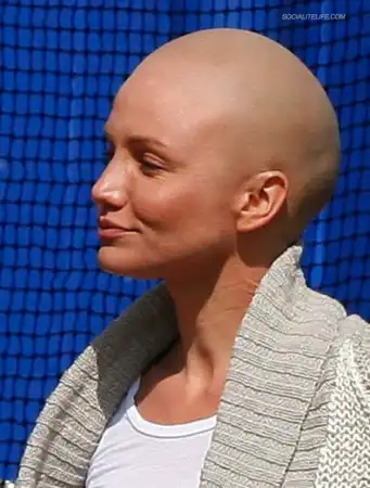 Не волнуйтесь, просто это съемки нового фильма, и Диаз не брилась налысо, все волосы целы, на ней специальная шапочка - всего лишь грим.