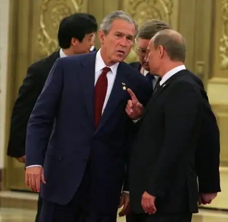 Премьер-министр России Владимир Путин с президентом США Джоржем Бушем.