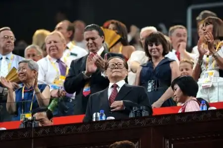 Бывший китайский лидер Цзян Цземинь на церемонии открытия Летних Олимпийских игр.