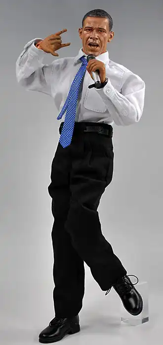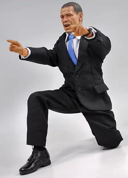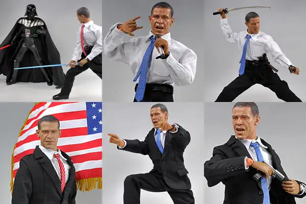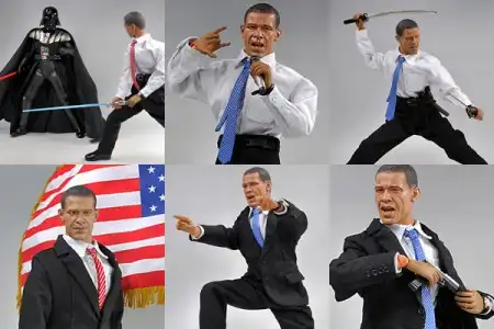 Новый президент США Барак Обама уже стал героем комикса о Человеке-пауке, неоднократно был на обложках журналов, его рисуют иллюстраторы, но и этого оказалось мало. Теперь появился игрушечный Барак Обама (Barack Obama).