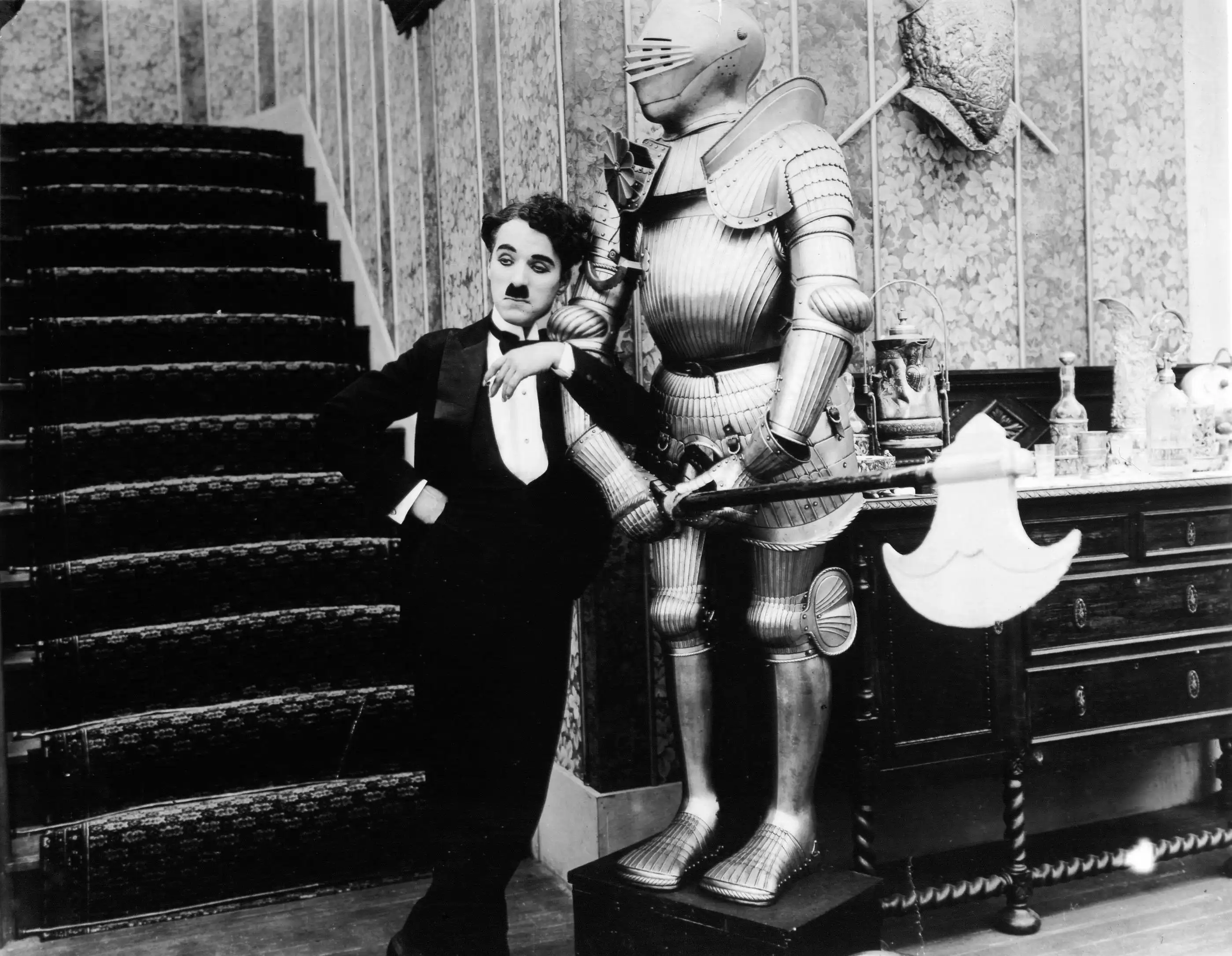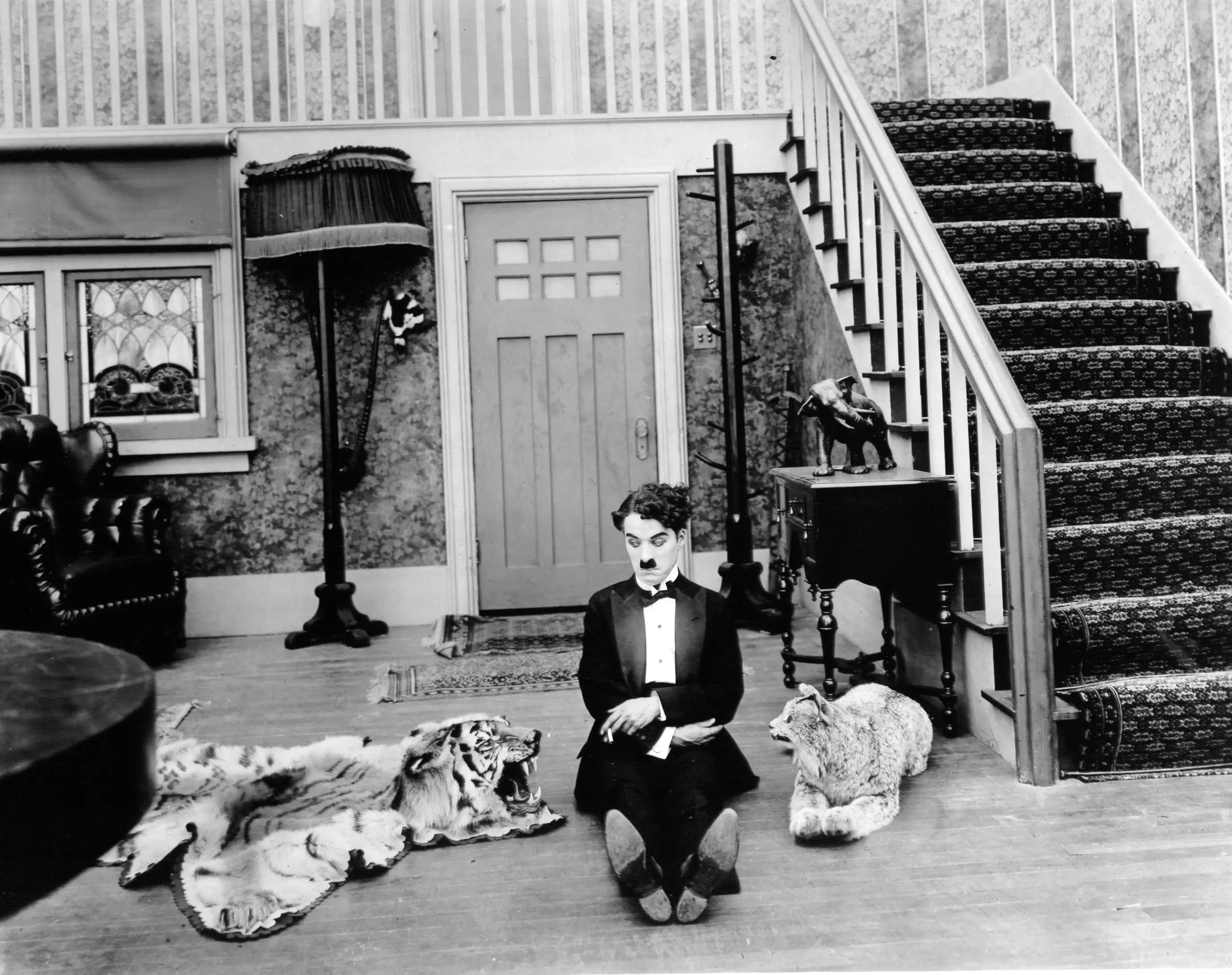 Из фильма в фильм (а их только в 1914 году вышло 34) этот бродяга, старавшийся казаться джентльменом, бегал, падал, кувыркался, швырял торты с кремом и получал ответные прямо в лицо, словом, использовал всем известные приемы клоунады и фарса. Во многом ему тут помогало его театральное прошлое: большинство трюков было заимствовано из английской пантомимы («Его новая профессия», 1914; «Ночь напролет», 1915; «Бродяга», 1915; «Женщина», 1915 и др.). Однако уже в «Банке» (1915) зрителей поразил грустный взгляд одинокого героя, а в «Иммигранте» (1917) появились первые приметы столкновения Чарли с враждебной действительностью.