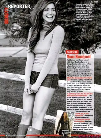 Мун Бладгуд получила всемирную известность благодаря главной женской роли в одном из главных блокбастеров этого года, в фильме «Терминатор 4: Да придёт спаситель» (Terminator Salvation) в образе «лишенной сантиментов закаленной в тяжелых боях героини».