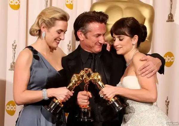 81-я церемония вручения премии Оскар Актриса Кейт Уинслет, обладательница премии Оскар за лучшую женскую роль (фильм "Чтец"), актер Шон Пенн, обладатель премии Оскар за лучшую мужскую роль (фильм "Харви Милк") и актриса Пенелопа Круз, обладательница премии Оскар за лучшую женскую роль второго плана (фильм "Вики Кристина Барселона"), на 81-й ежегодной церемонии вручения премии Оскар Американской Киноакадемии в Kodak Theatre.