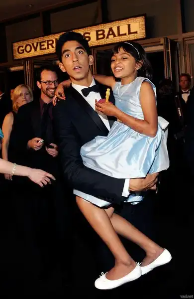 Лучший фильм-2009 Актер Дев Патель и актриса Рубина Али, исполнители главных ролей в фильме "Миллионер из трущоб" режиссера Денни Бойла (премия Оскар за лучший фильм), на ежегодном балу в честь 81-й церемонии вручения премии Оскар.