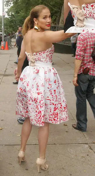 17. Дженнифер Лопез пришлось скрепить порвавшееся платье булавкой во время фотосессии в Нью-Йорке.