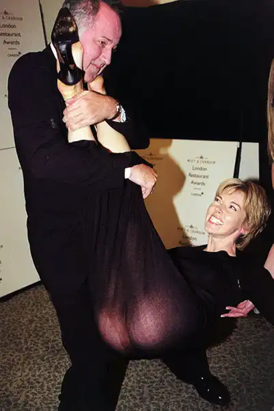 10. Когда ТВ ведущая Мэри Найтингейл надевала это платье, она не знала, что Майкл Бэрримор вдруг решит поднять ее…причем, в довольно странной позе. (Matthew Fearn/PA)