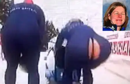1. Британская бобслеистка Джиллиан Кук порвала свой костюм на Чемпионате мира в Швейцарии. (Eurosport/Getty Images)