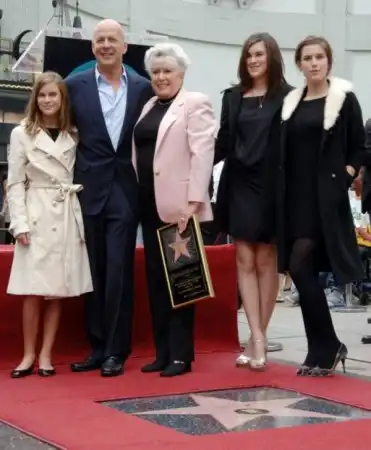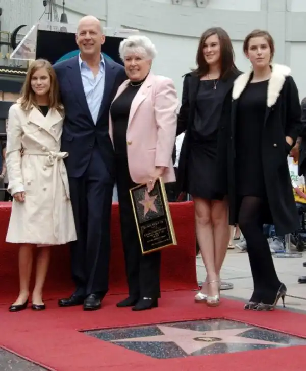 Брюс Уиллис со своей мамой Марлен (в розовом) и дочерьми Таллулой Бель, Скаут ЛаРу и Румер (слева направо)