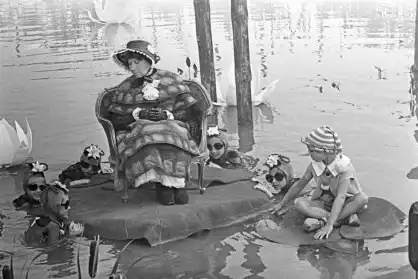 Белорусская ССР, 1975. Артистка Рина Зеленая в роли черепахи Тортиллы и Дима Иосифов в роли Буратино в фильме по сказке Алексея Толстого «Буратино» режиссера Леонида Нечаева. Производство киностудии «Беларусьфильм».