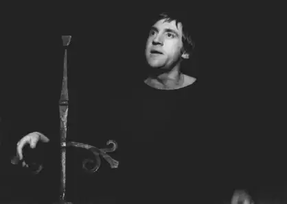 Москва, 1977. Владимир Высоцкий в роли Гамлета из спектакля «Гамлет» в постановке Московского театра драмы и комедии на Таганке.