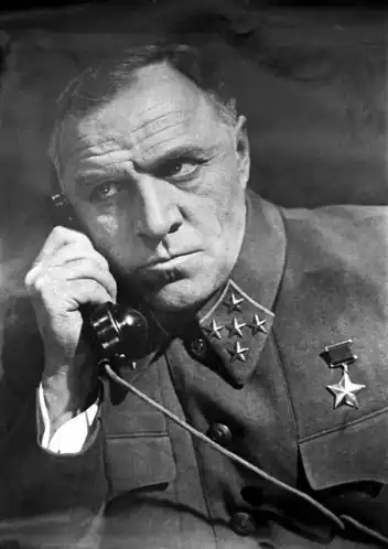 Москва, 1975. Художественный фильм «Блокада» рассказывает о городе-герое Ленинграде. На снимке: кадр из фильма. Генерал армии Г.К.Жуков – народный артист СССР Михаил Ульянов.