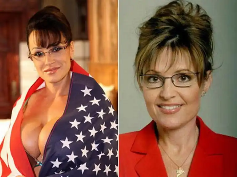 И с одной стороны и с другой стороны представлены знаменитости. Только одни известны в сфере порно бизнеса, а другие блещут на музыкальных сценах и снимаются в кино. Удивительная на самом деле подборка и в некоторых случаях сходства просто поразительные.