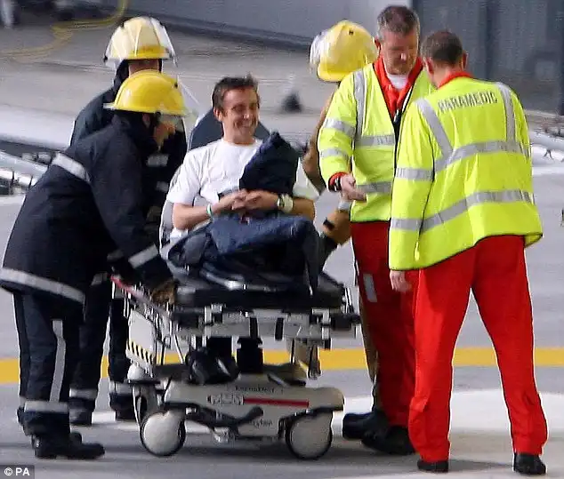 Специалисты в общей больнице Лидса сказали, что он получил «серьёзную травму мозга». BBC отмечает что он был приподнят воздухом с места аварии и в этот момент потерял сознание. Полиция северного Йоркшира сообщила, что они «получили сообщение от пожарной службы, что мужчина зажат в перевёрнутой гоночной машине, которая ехала по аэродрому»