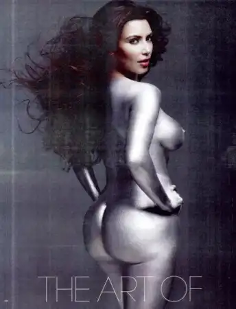 В 2007-м Ким уже обнажалась для Playboy, однако, потом заявила, что очень жалеет об этом - ей было неловко и некомфортно. Видимо, модный журнал – это совсем другое дело. Так, красотка предстала без одежды на обложке его ноябрьского номера. На страницах издания Ким также появляется обнаженной - ее тело покрыто только тонким слоем серебряной краски.
