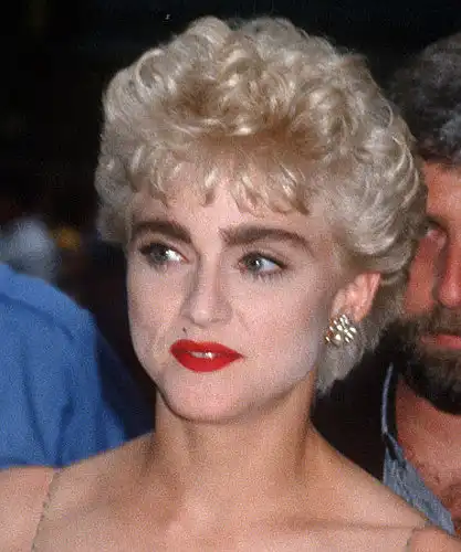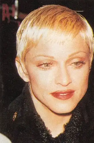 Это, пожалуй, одна из самых неудачных причесок Мадонны – химия и отчаянный блонд на коротких волосах. «Она очень веселится, когда видит свои старые фото», - говорит визажист Мадонны Джина Брук. Но, между прочим, этот образ породил множество почитательниц в нашей стране: еще очень долго за кассами в продуктовых магазинах гордо стояли девушки именно с такими прическами.