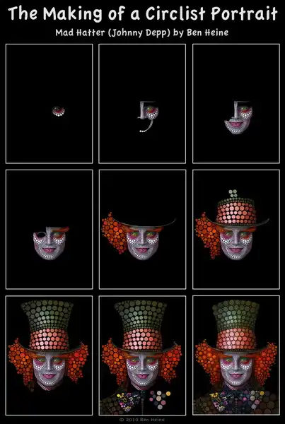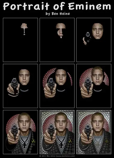 Молодой бельгийский графический дизайнер Бенжамин Эйн (Benjamin Heine) создал серию портретов знаменитостей, используя исключительно цветные круги. К портретам прилагается и making-of каждого из них.