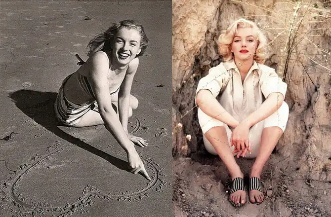 «Величайшая блондинка всех времен» родилась шатенкой. Блондинкой она стала примерно в то же время, когда и сменила имя на псевдоним. А кроме того сделала несколько пластических операций. Хирурги исправили ее нос и изменили форму подбородка. А также решили проблему с волосами, которые росли у нее треугольным выступом на лбу. С детских лет ее любимой актрисой была Джин Харлоу – голливудская звезда 30-х годов, умершая в 26 лет. Это увлечение в значительной мере предопределило перевоплощение Мэрилин в блондинку и повлияло на выбор жизненного пути. Современники нередко называли Мэрилин Монро – второй Джин Харлоу. Мэрилин Монро даже предлагали сыграть Харлоу в фильме-биографии о её жизни. Сначала она отказалась, но потом передумала и даже назначила встречу с продюсерами будущего фильма, однако, как и Джин, внезапно скончалась.