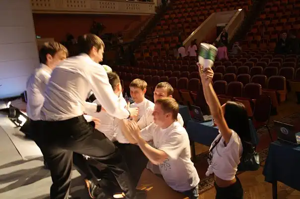 Немного истории: совсем оригинальная команда, очень оригинальные музыкальные вставки в течении всего выступления, тонкий юмор. Команда из гостеприимного города Нягань, настолько гостеприимного, что оттуда еще никто не возвращался.