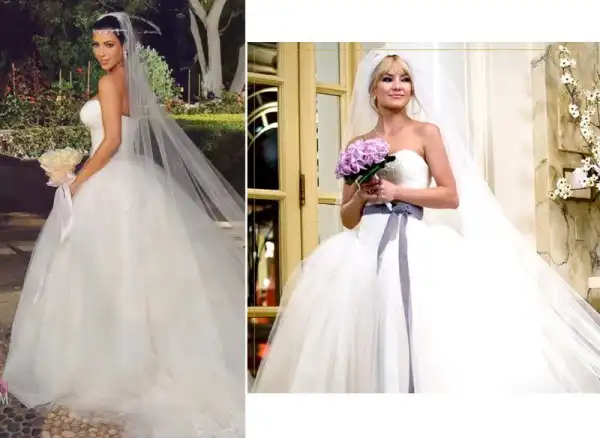 За исключением свадебного платья Кейт Миддлтон, в 2011 году самым ожидаемым подвенечным нарядом стало свадебное платье Ким Кардашьян от Веры Вон. Но после августовской свадьбы Кардашьян с Крисом Хамфрисом, редакторы модного журнала Us Weekly заметили, что Ким скопировала образ Кейт Хадсон. Ее платье выглядело идентично платью от Веры Вон, которое актриса надевала в фильме «Война невест» (2009). Художник по костюмам Карен Патч объяснила журналу Brides: «У меня было много разных образов от Веры Вон на выбор. Идея платья Кейт подразумевала, что она является идеальной и знаменитой невестой. Она воплощала собой образ невесты, способной получить все, что пожелает». По-видимому, Ким также полюбила это платье с первого взгляда.