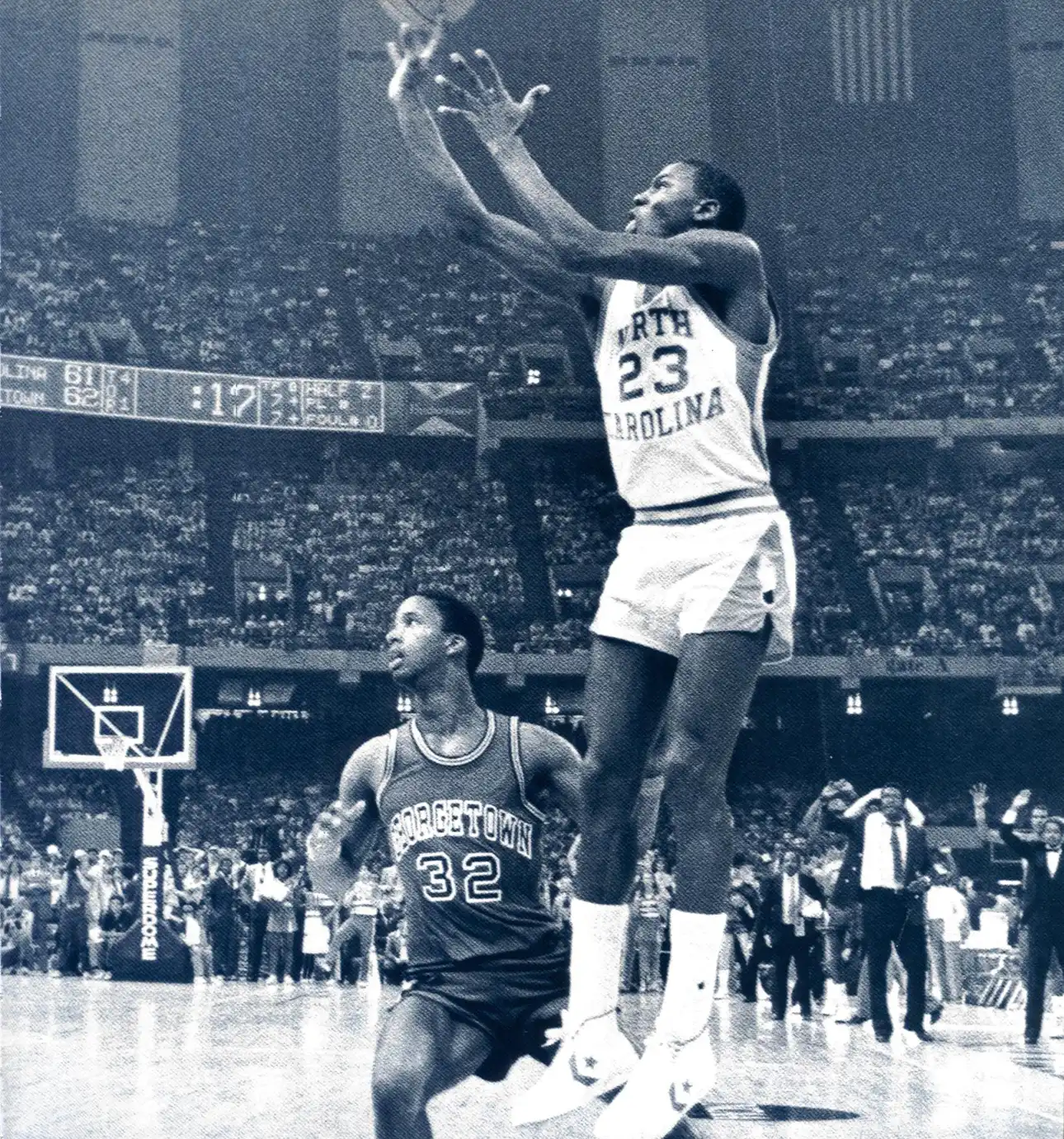 После начала карьеры в команде Университета Северной Каролины (1982—1984), с которой он выиграл чемпионат NCAA 1982 года, Джордан присоединился к команде «Чикаго Буллз» в 1984 году. Он быстро стал звездой НБА, очаровав публику своей результативной игрой. Его способность прыгать, продемонстрированная на конкурсе по броскам сверху, когда он забил с линии штрафного броска, принесла ему прозвище «Air Jordan» и «его Воздушество». Он также приобрел репутацию одного из лучших защитников в баскетболе[2]. В 1991 году он выиграл свой первый чемпионат НБА с «Буллз», после чего повторил успех в 1992 и 1993 годах. Хотя Джордан внезапно ушёл из баскетбола после гибели отца в начале сезона 1993-94 и попытался сделать карьеру в бейсболе, он вернулся в 1995 и помог «Буллз» выиграть ещё три титула (1996, 1997 и 1998), попутно установив рекорд НБА по количеству выигранных матчей в течение регулярного сезона — 72 победы (сезон 1995-96). Во второй раз Джордан завершил карьеру в 1999 году, но вернулся ещё на два сезона в 2001 году в качестве игрока «Вашингтон Уизардс».