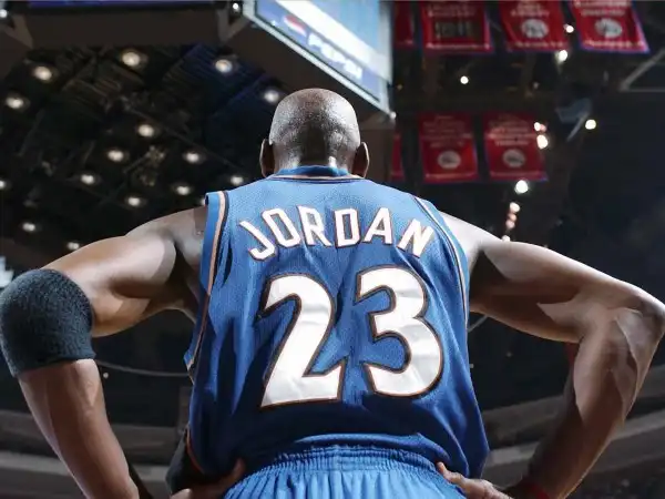 Несмотря на своё утверждение в январе 1999 года, что он был на «99,9 % уверен», что никогда не будет играть,[58] летом 2001 года Джордан выразил заинтересованность в своём возвращении в НБА,[96][97] но на этот раз с новой командой. Вдохновлённый возвращением в НХЛ своего друга Марио Лемье предыдущей зимой,[98] Джордан большую часть весны и лета 2001 года упорно тренировался. Майкл провёл несколько закрытых тренировочных лагерей с участием игроков НБА в Чикаго.[99] Кроме того, Джордан назначил на пост главного тренера «Вашингтон Уизардс» своего старого тренера из «Чикаго Буллз» Дага Коллинза. По мнению многих, это назначение предопределило возвращение Джордана.